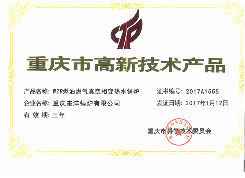 WZR型燃油燃?xì)庹婵障嘧儫崴咝录夹g(shù)產(chǎn)品證書(shū)